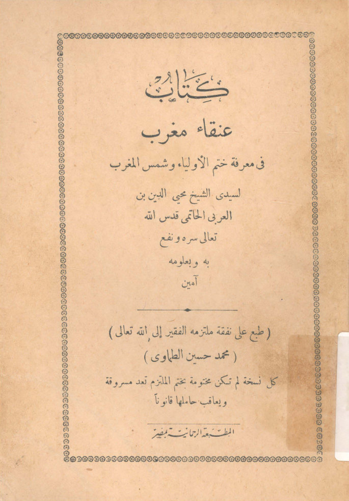 5 Ibnu ‘Arabī, ‘Anqā’ Mughrib fī Ma‘rifat Khatm al-Auliyā’ wa Syams al-Maghrib (Kairo: Maṭba‘ah Raḥmāniyyah, tt), hlm. 70.